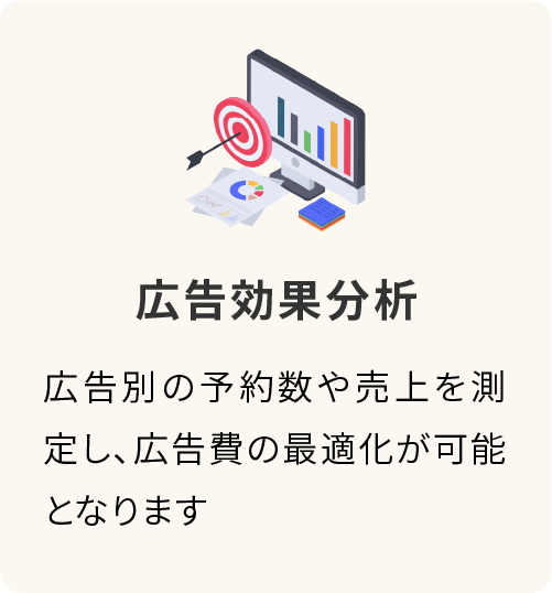 Google広告、Instagram、LINE、チラシなど、あらゆる集客チャネルからの予約数を自動で計測できます。
