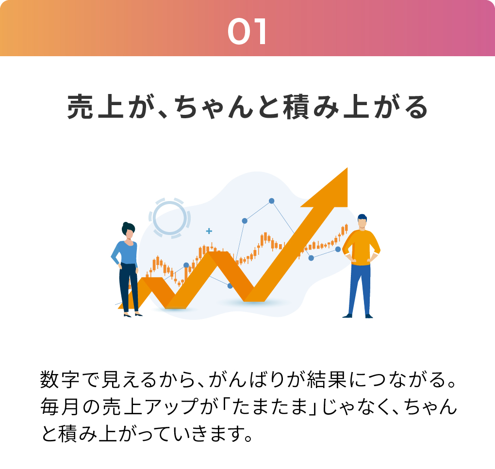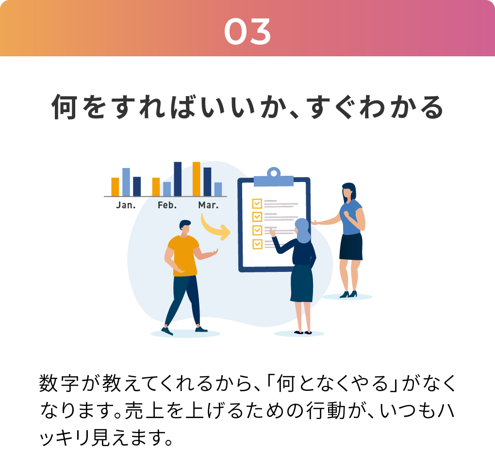 売上だけでなく“その原因”まで掘り下げて見えるため、現場の課題を早めに発見し、適切な改善に活かすことができます。